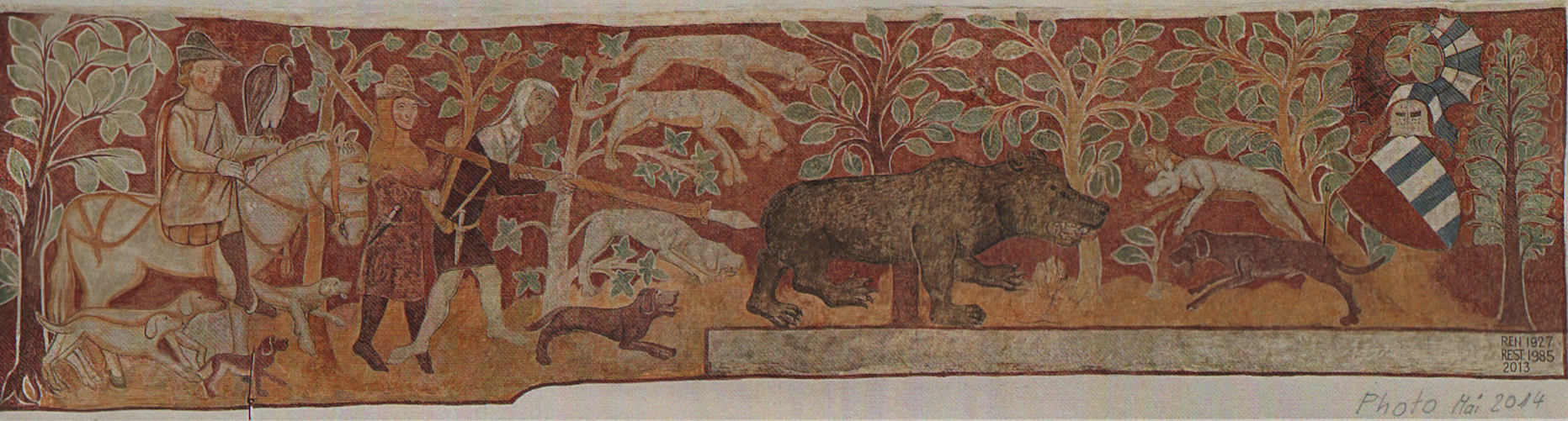 Zu dieser Zeit liess der Freiherr Heinrich IV. v. Rhäzüns, oder sein Nachfolger, der Neffe Freiherr UlrichII. v.Rhäzüns (der Mächtige),die Fresken zum Motiv einer Bärenhatz an der Westwand ausmalen.
