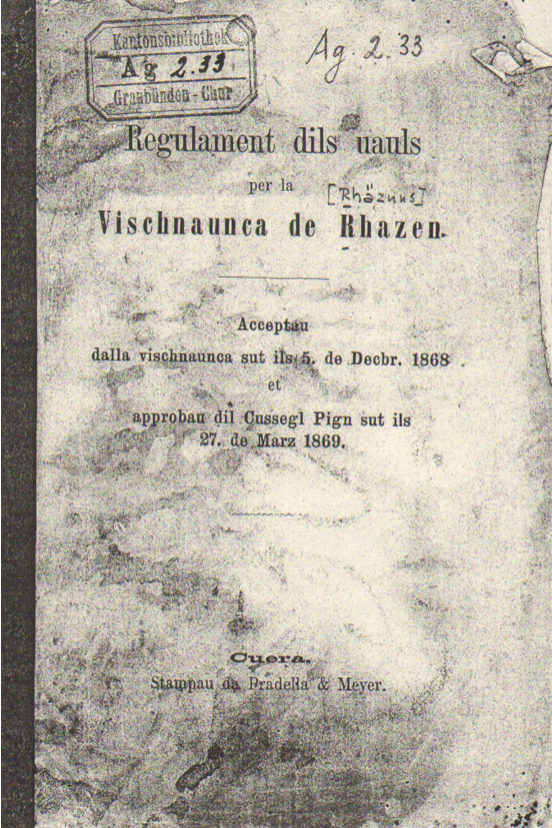 5. Dezember 1868: Regulament dils uauls per la vischnaunca de Razén.