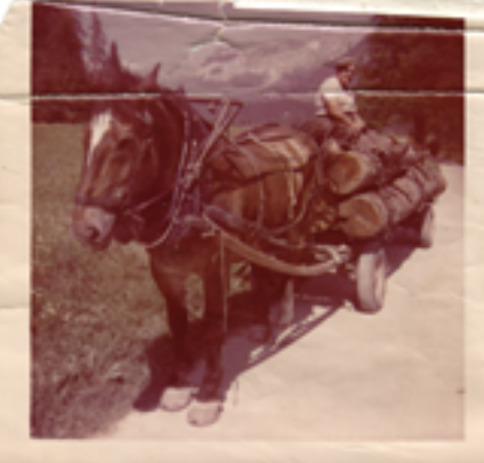 1964: Holzfuhr von M. Spadin bei Figiu. (Sammlung chrsp.)