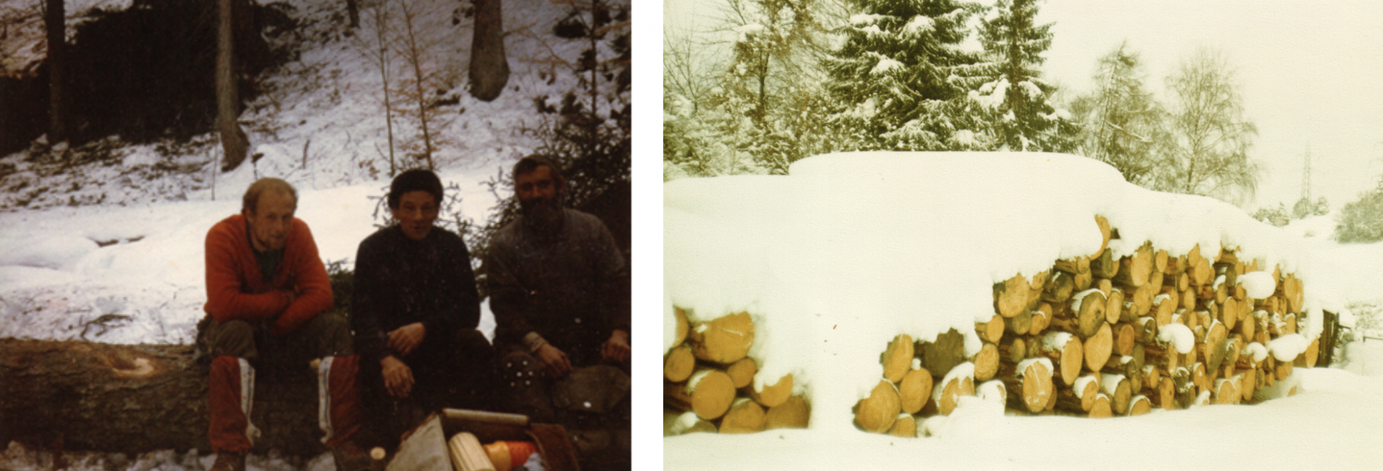 1980. Forstwart-Vorarbeiter Thomas Decasper mit der Pullax der Firma Merk beim alten Werkhof Obermühle.