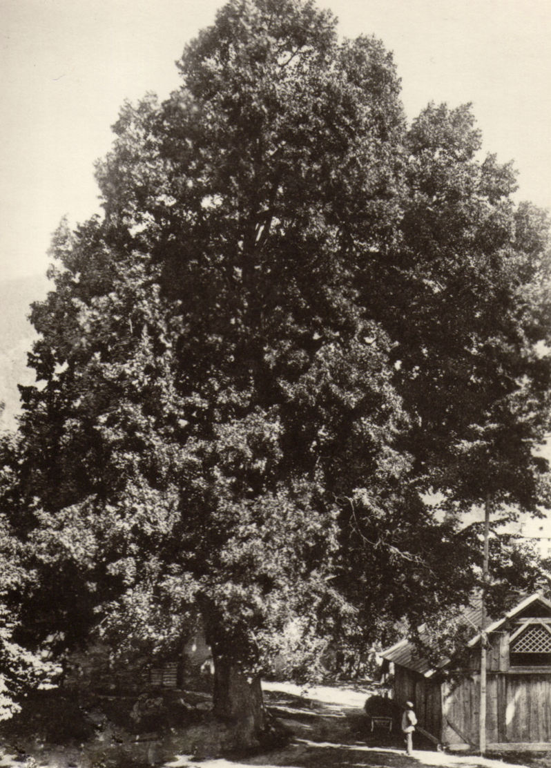 1952. Der grösste und mehrere hundert Jahre alte Lindenbaum (historische Gerichtslinde) an der Via Casti/am Weg zum Schloss stand unter Schutz und wurde trotzdem gefällt. M.s.u. 33. Hochgericht Rhäzüns (Gerichtslinde).