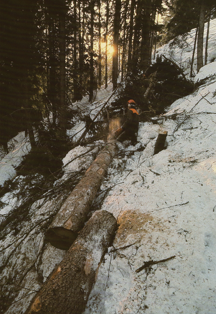 1982. Instruktion: Holzfällen mit Seilwinde in Prau Videum (Sammlung chrsp.)