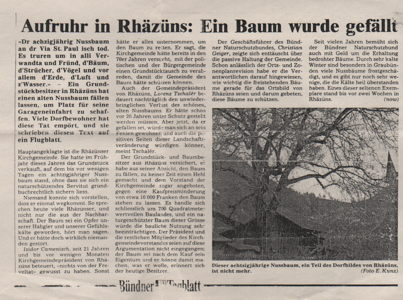 Um 1984 wurde der grösste Nussbaum in der Region an der Via St. Paul unter öffentlichem Protest gefällt.