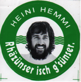 1976. Winterolympiade in Innsbruck: Der Olympia-Riesenslalom-Sieger von Innsbruck, Heini Hemmi aus Parpan, brachte das Rhäzünser Mineralwasser mit dem Süsswasser-Sortiment schwungvoll in Fahrt.
